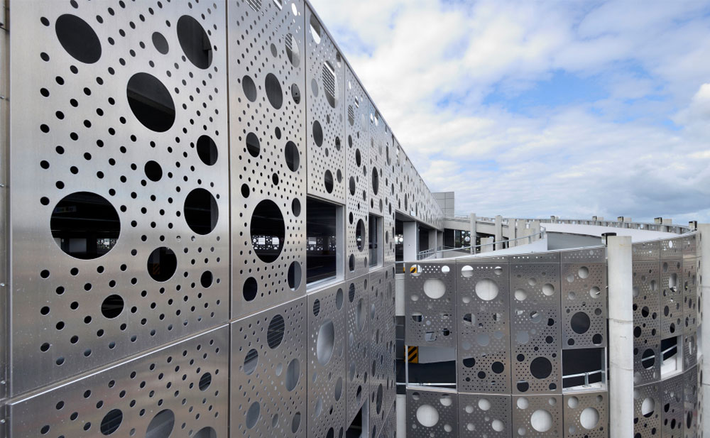 冲孔铝单板:功能与美学的融合之选冲孔铝单板不仅具备原生防护性能,能长期保持色泽不褪色、不粉化,使用寿命长久;同时它也是一种艺术载体,将功能性与美学性完美结合。铝质吊顶板与幕墙可实现多规格